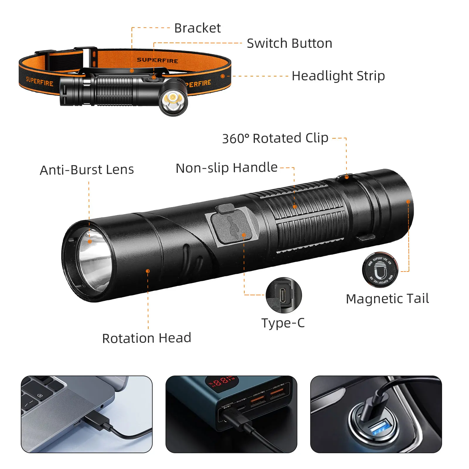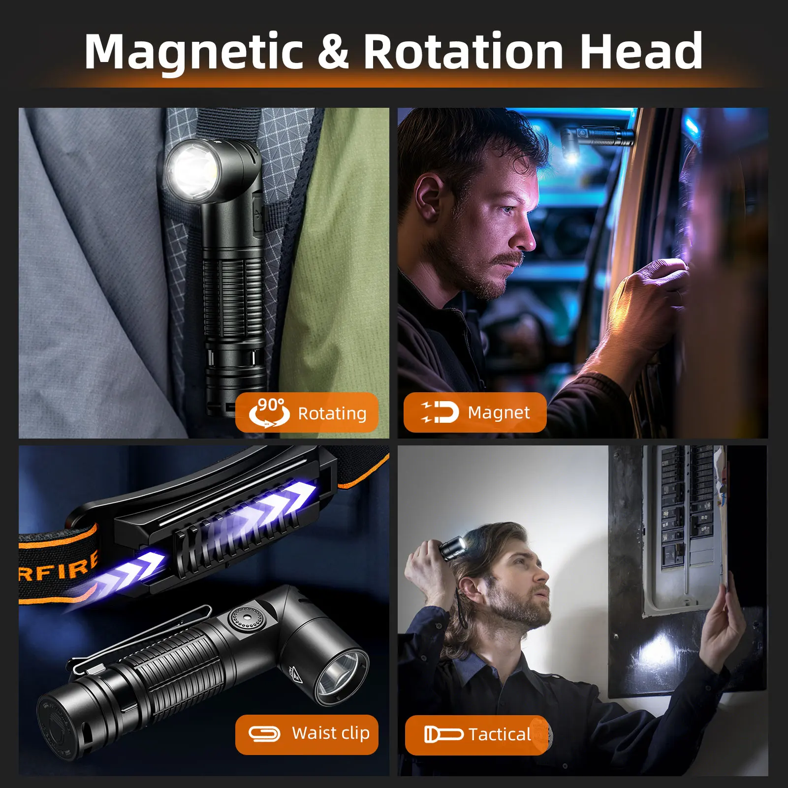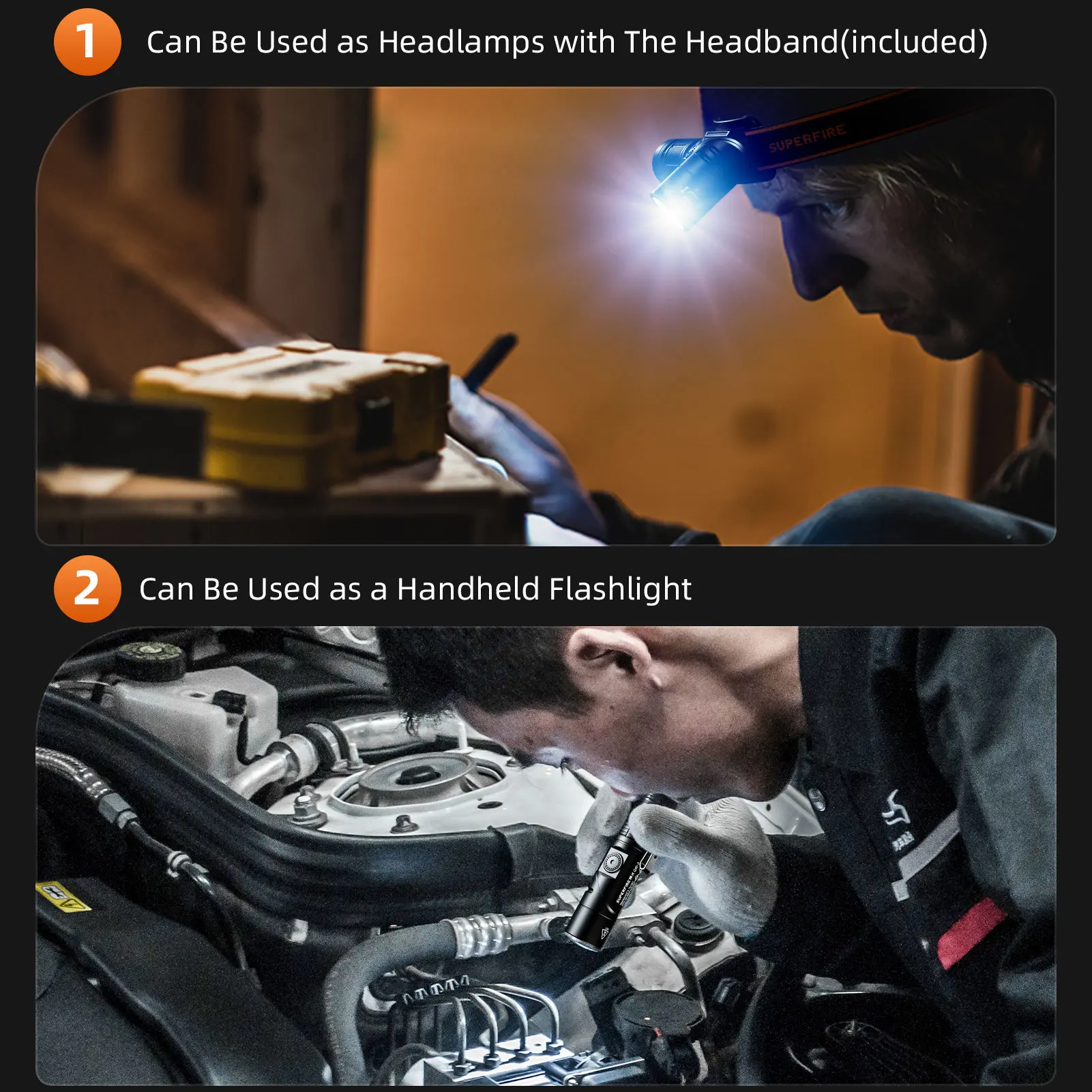 G19-S LED+COB Head Flashlight with Magnet Adjustable Base, USB Rechargeable Headlamp Work Light for Camping Fishing