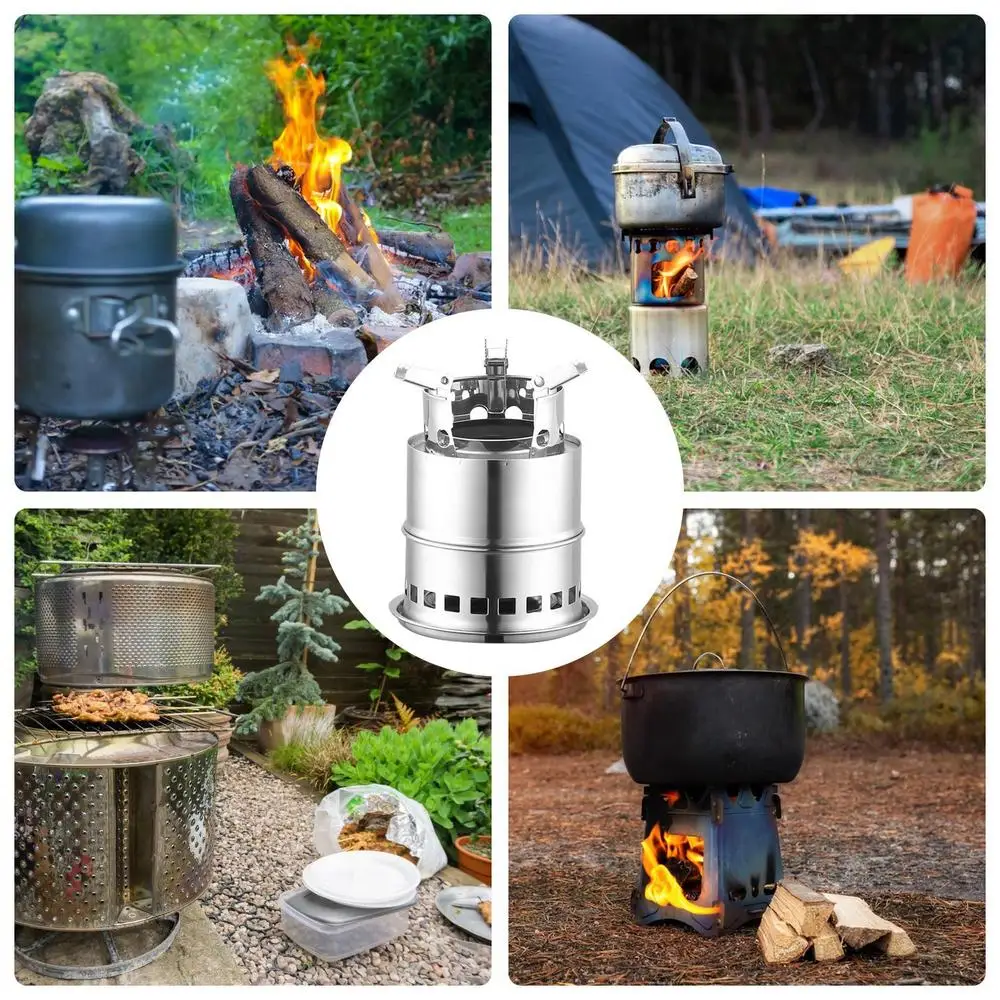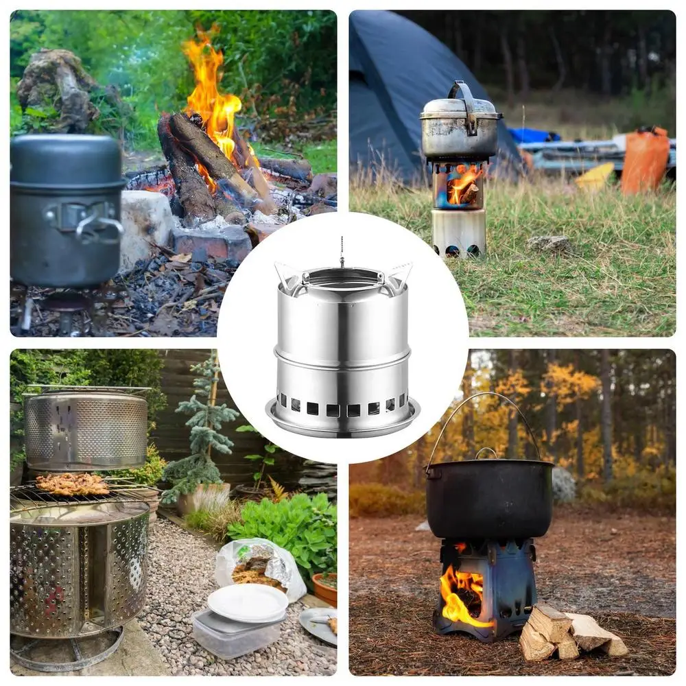 Smokeless Fire Pit Brazier Outdoor Camping Wood Burning Stove Portable Stainless Steel Firepit Bonfire Travel Picnic BBQ Cooker